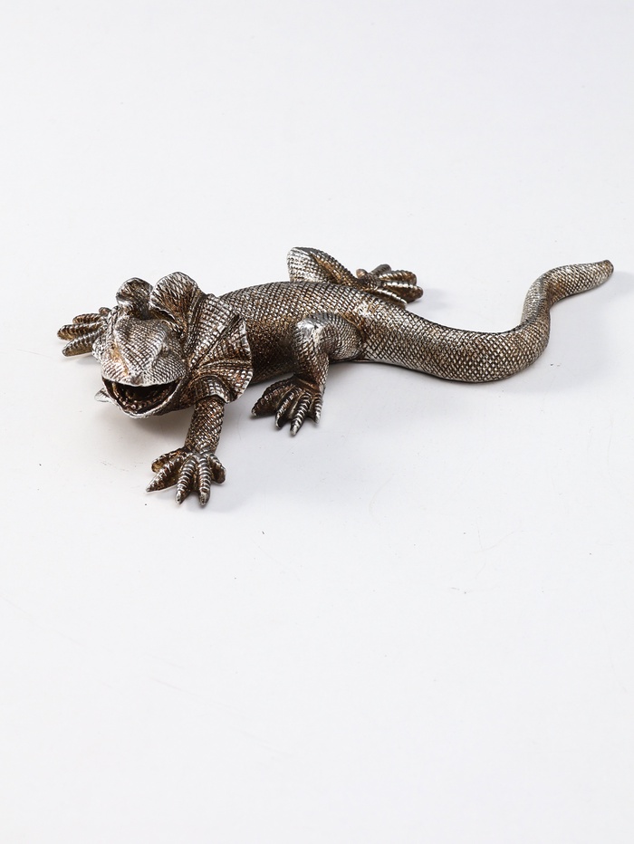 Этот барельеф ящерицы в серебре — детализированное воплощение дикой природы для вашего интерьера. Скульптура передаёт изящную мощь плащеносной ящерицы, застывшей в момент спокойствия. Идеальный акцент для кабинета, гостиной или библиотеки, он добавляет пространству характер и интеллектуальную глубину.