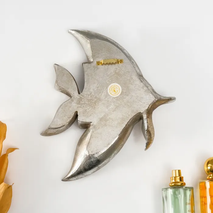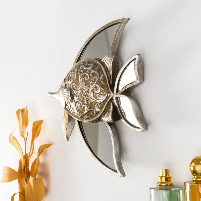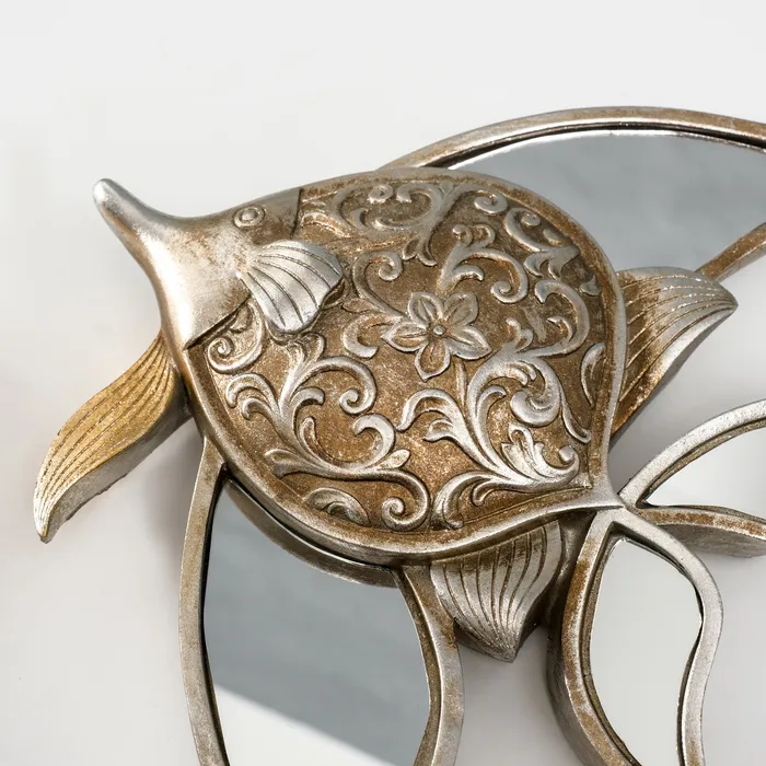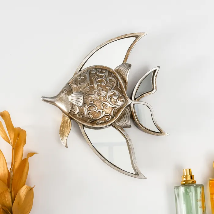 Панно настенное «Зеркальная рыбка с узорами», полистоун, декор, под серебро, 21×4×24 см — Характеристики