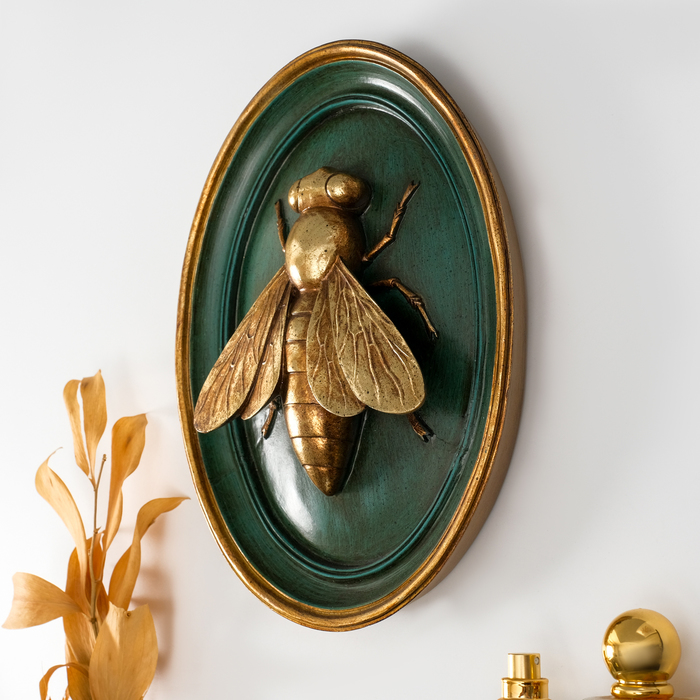 Панно настенное «Золотая муха», полистоун, декор, тёмно-зеленый, 20×4.5×26.5 см — Характеристики