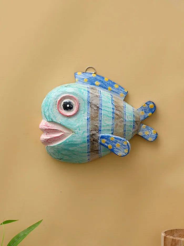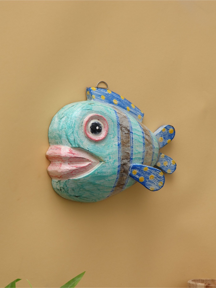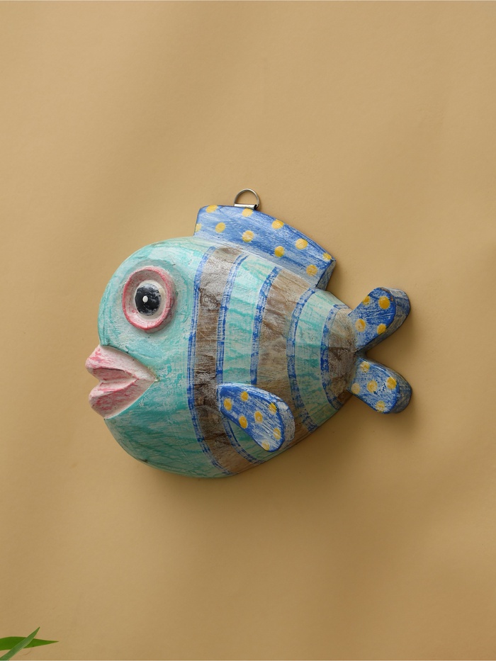 Панно «Рыба-клоун», 20×16.5×6.5 см, дерево, бирюзовое
