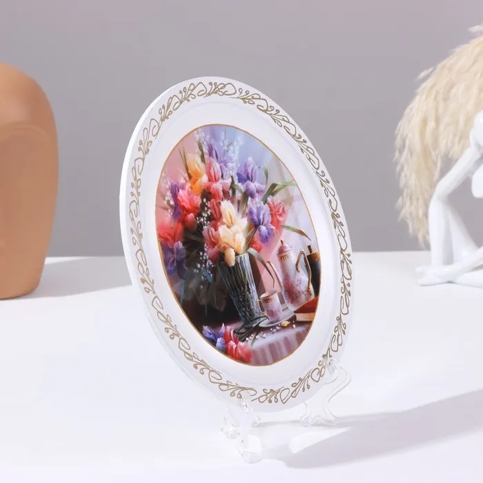 Панно-тарелка «Ирисы», белая, D = 20 см, лаковая миниатюра — Характеристики