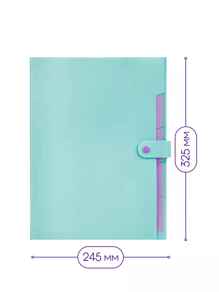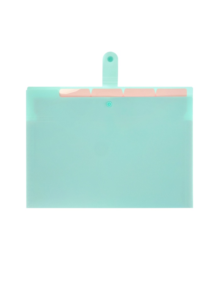 Папка пластиковая на кнопке с отделениями Calligrata формата А4. Обложка матовая, фактура «песок». Цвет обложки - зеленый. Пять внутренних отделений для удобного хранения и организации документов. Каждое отделение с индексным полем, позволяет сортировать документы по темам или алфавиту. Надежная застежка-кнопка. Контрастный розовый цвет отделений. Быстрый доступ к содержимому. Изготовлена из высококачественного полипропилена с матовой текстурой. Предназначена для хранения и транспортировки документов. Толщина обложки 600мкм. Вмещает до 200 листов. Размер 245*325*10. Упакована в индивидуальный прозрачный пакет по форме.