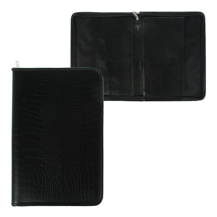 Представительная деловая папка для бумаг на молнии. Изготовлена из высококачественного кожзаменителя, фактура под крокодила. Размер изделия 250 на 350 мм. Толщина папки 30 мм. Внутри расположено удобных, вместительных 4 кармана. .