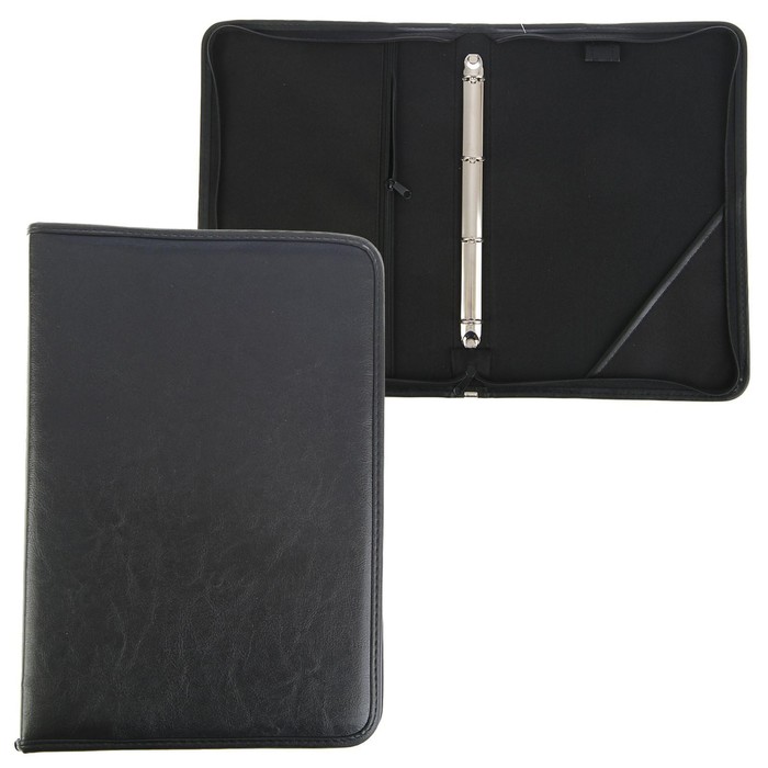 Пaпка деловая Calligrata "Лайт", искусственная кожа, для бумаг, для офиса, с кольцевым механизмом 4, 360 х 260 х 30 мм, чёрная — Характеристики