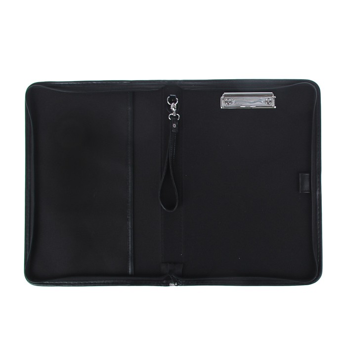 Представительная деловая папка на молнии.Изготовлена из черный К/З Люкс Размер 370*250Толщина папки 38 мм.Внутри расположен удобный, вместительн.Зажим для бумаг.Удобная ручка в виде петли.