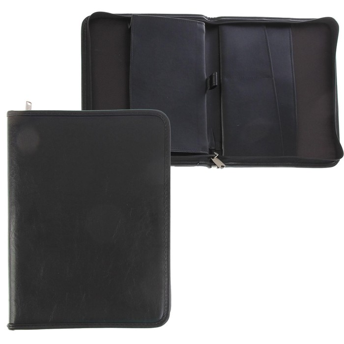 Представительная деловая папка на молнии.Изготовлена из черного К/З Люкс.Размер изделия 250 на 350 мм. Толщина папки 30 мм.Внутри расположено удобных, вместительных 4 кармана.