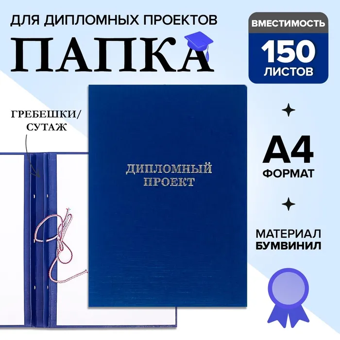 Папка "Дипломный проект" А4 бумвинил, гребешки/сутаж, без бумаги, синяя (вместимость до 150 листов) — Характеристики