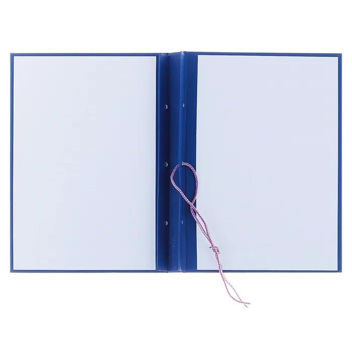 Корешок 30мм, Внутри расположена вставка с тремя отверстиями и шнуром для сшивания листов"