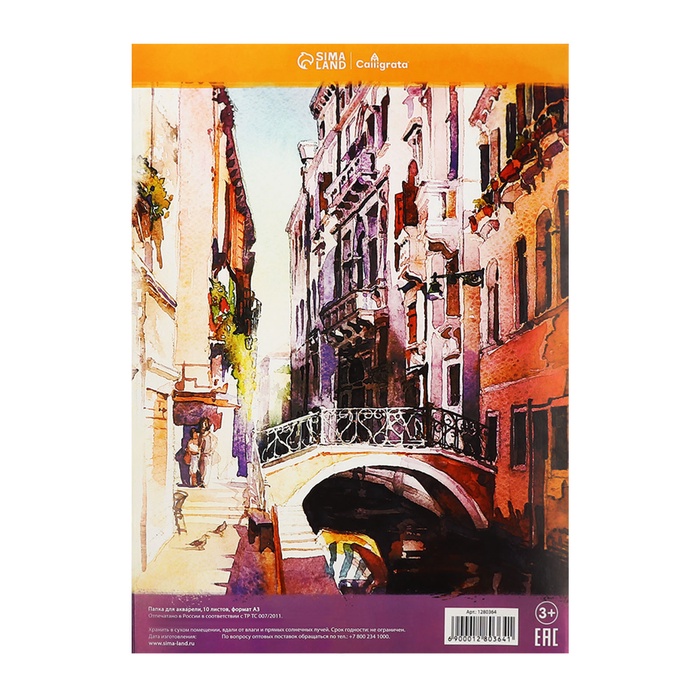 Папка для акварели А3, 10 листов 200г/м2 Calligrata, бумага СПБФ ГОЗНАК — Характеристики