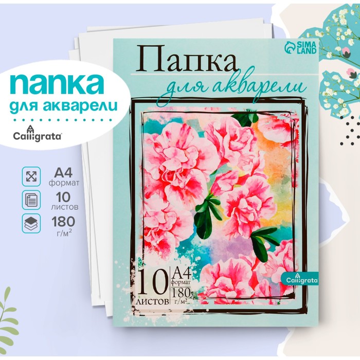Папка для акварели А4, 10 листов "Цветы", блок 180 г/м2, рисовальная — Характеристики