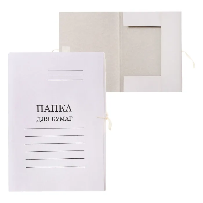 Папка для бумаг с завязками Calligrata, мелованный картон, 370 г/м2, до 200 листов, белая