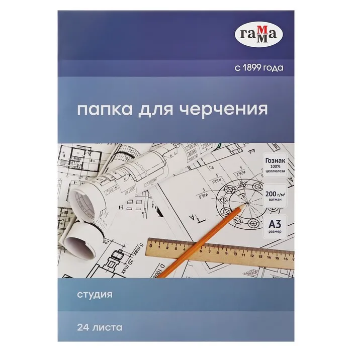 Папка для черчения ГАММА «Студия» идеальна для создания графических работ, эскизов, зарисовок чернографитными карандашами, тушью, углем, сангиной, пастелью, гуашью и акварелью. Количество листов в упаковке – 24
