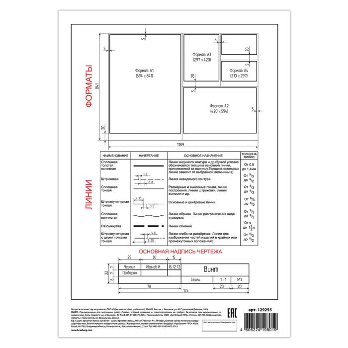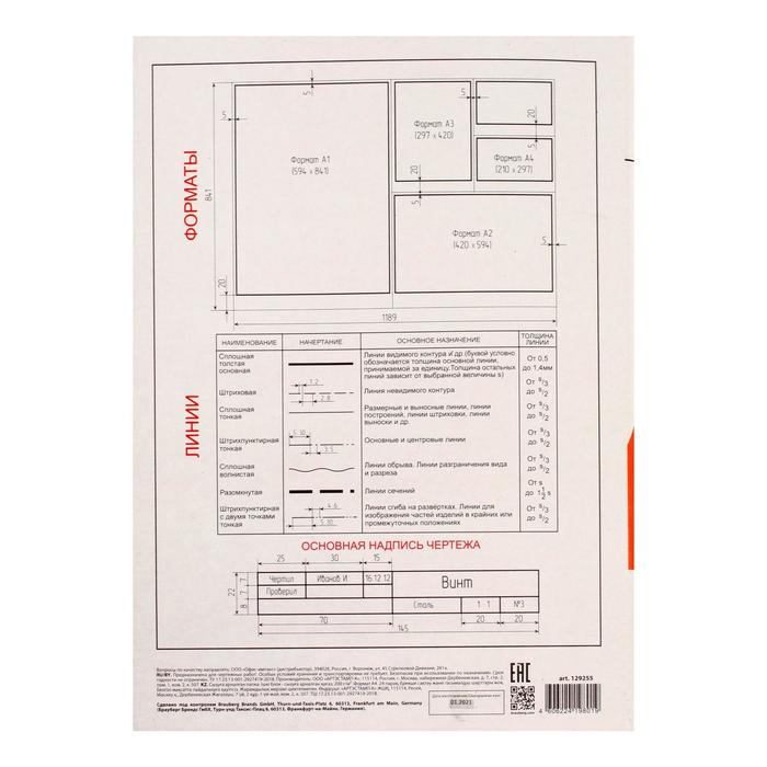Папка для черчения А3, 7 листов, блок 160 г/м2, с горизонтальным штампом