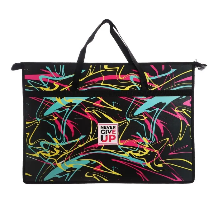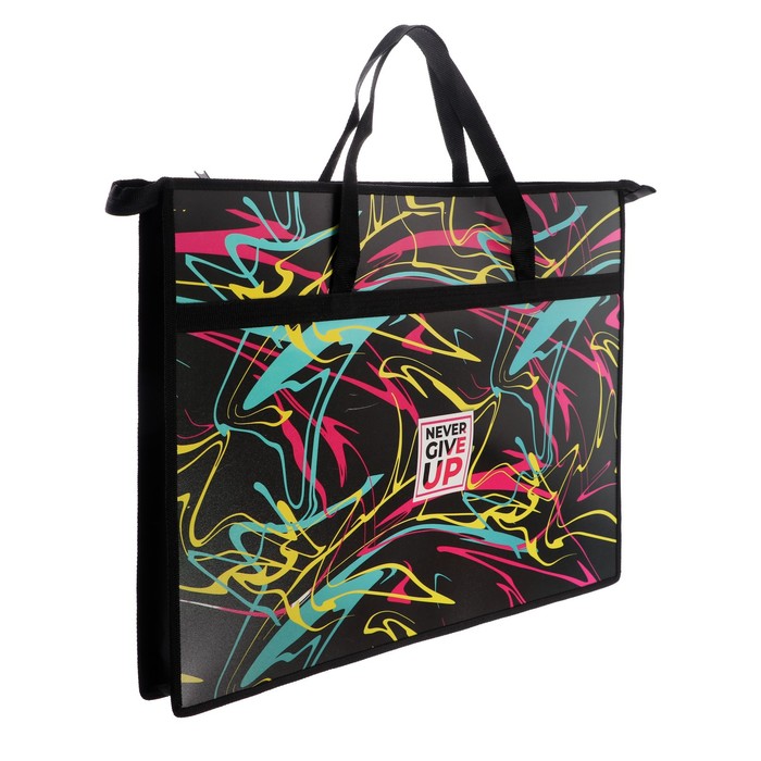Папка для черчения и рисунков А3, 470 х 335 х 50 мм, с ручками, пластиковая, молния сверху, ПМ-А3-26 "Абстракция" чёрная — Характеристики