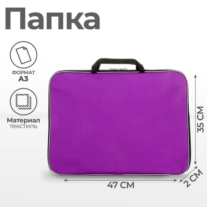 Папка для чертежей и рисунков А1, 900 х 655 х 50 мм, с ручками, пластиковая, молния сверху, тёмно-синяя — Характеристики