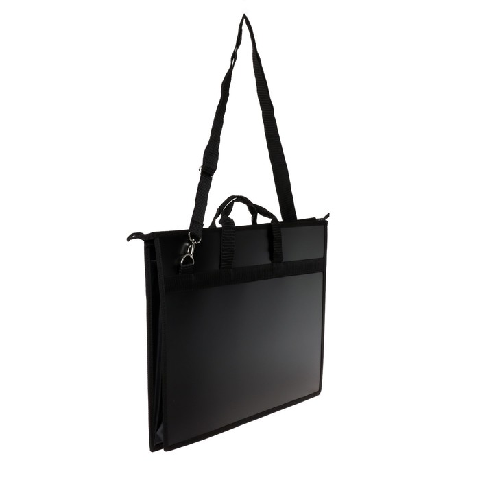 Папка для чертежей и рисунков A3, 420 х 343 х 50 мм, с ручками, пластиковая, молния сверху, 0.9 мм, "Стандарт" ПР 5, плечевой ремень, чёрная — Характеристики