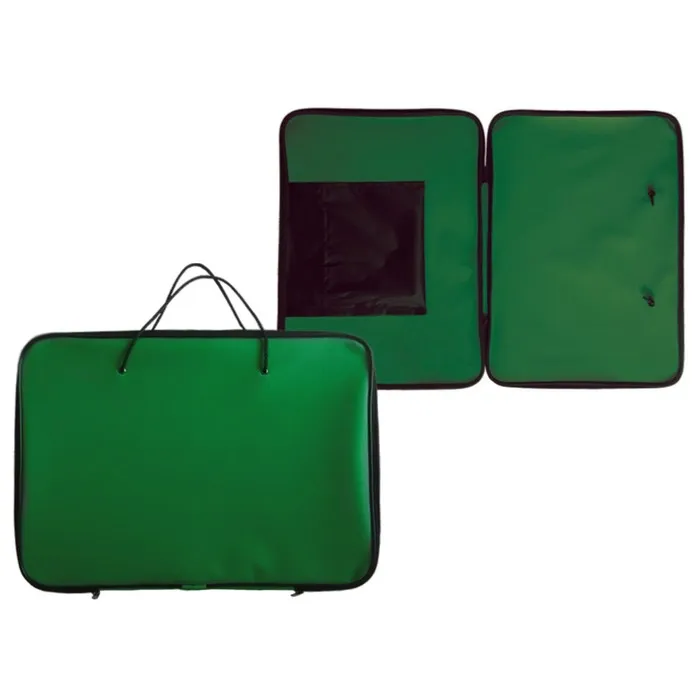Папка А3, размер 47*34 см.Формат позволяет использовать папку при переносе рисунков, чертежей и других документов, большого формата.Изготовлена из прочной ткани, плотностью 600, с нанесенным слоем ПВХ.Папка на кедере, держит форму. Ручки - шнурыВ нутри навесной карман.Молния открывается с 3-х сторон. для удобства имеется 2 замка