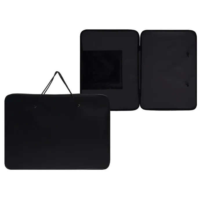 Папка А3, размер 47*34 см.Формат позволяет использовать папку при переносе рисунков, чертежей и других документов, большого формата.Изготовлена из прочной ткани, плотностью 600, с нанесенным слоем ПВХ.Папка на кедере, держит форму. Ручки - шнурыВ нутри навесной карман.Молния открывается с 3-х сторон. для удобства имеется 2 замка