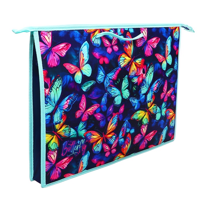 Папка для чертежей и рисунков A3, 470 х 345 х 50 мм, с ручками, пластик/текстиль, молния сверху, ПР 3 -20 "Неон бабочки" 72689 — Характеристики