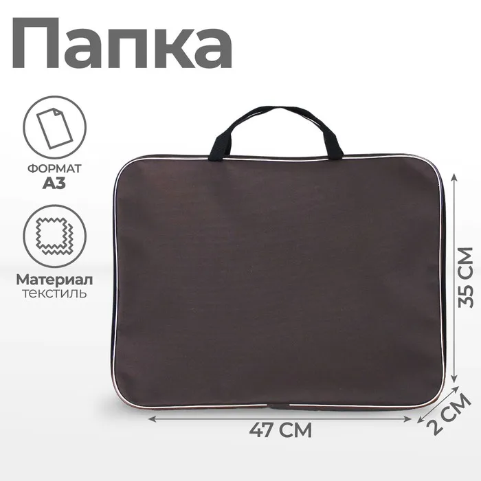 Папка для чертежей и рисунков А3, 470 х 350 х 20 мм, с ручками, текстильная, Calligrata Стандарт, Коричневая, плотность 600D — Характеристики