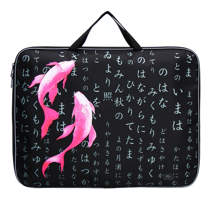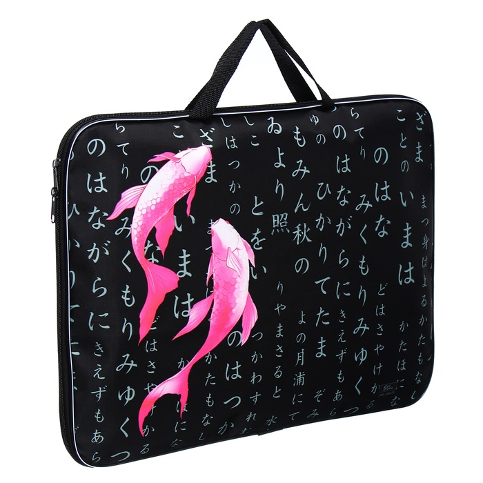 Папка для чертежей и рисунков А3, 470×350×20 мм, с ручками, текстильная, «Рыбки» — Характеристики
