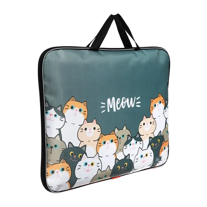 Папка для чертежей и рисунков А3 «Коты», 470×350×20 мм, с ручками, текстильная, Calligrata