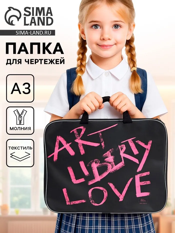 Папка для чертежей и рисунков Art love А3, 470×350×20 мм, с ручками, текстильная — Характеристики