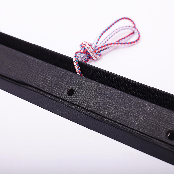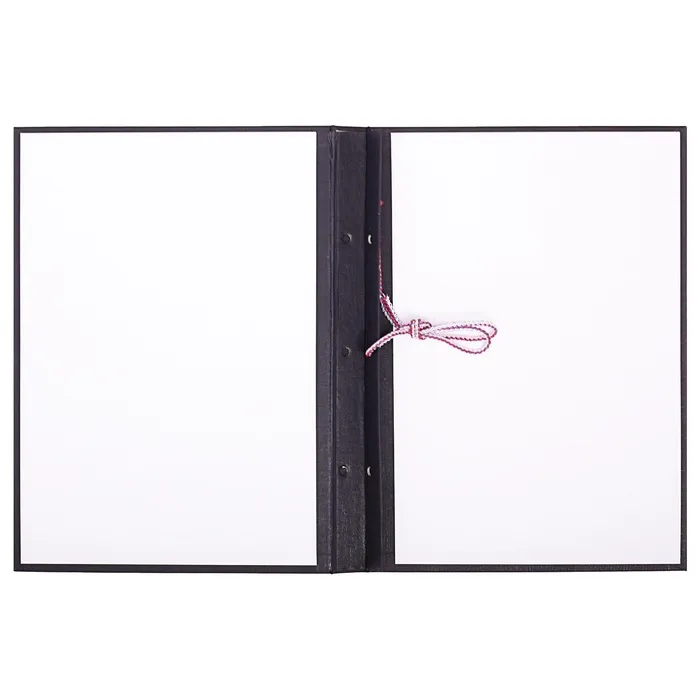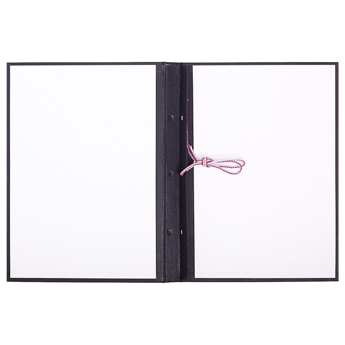 Корешок 30 мм. Внутри расположена вставка с тремя отверстиями и шнуром для сшивания листов