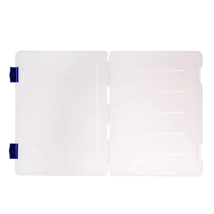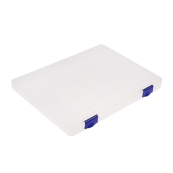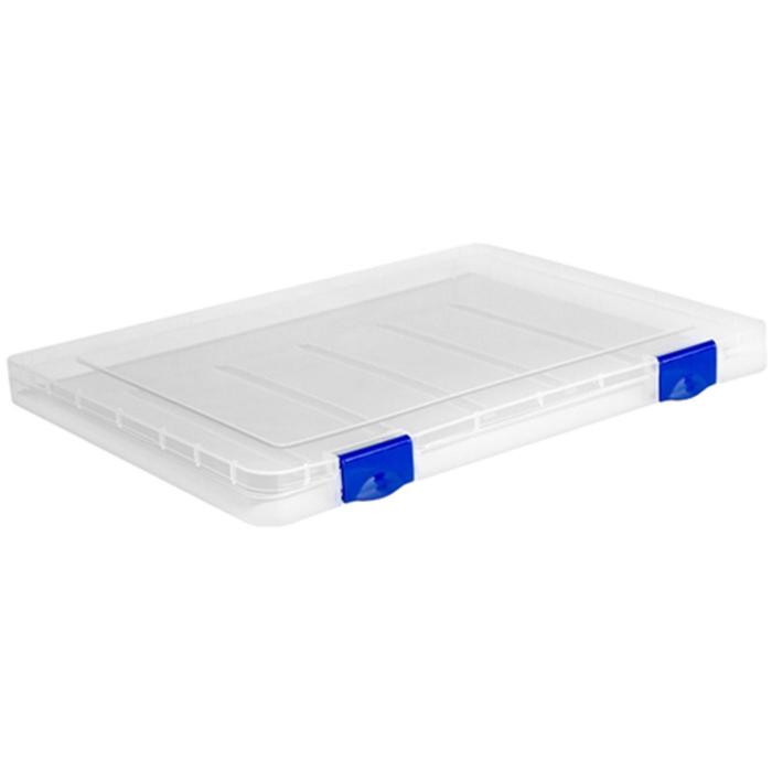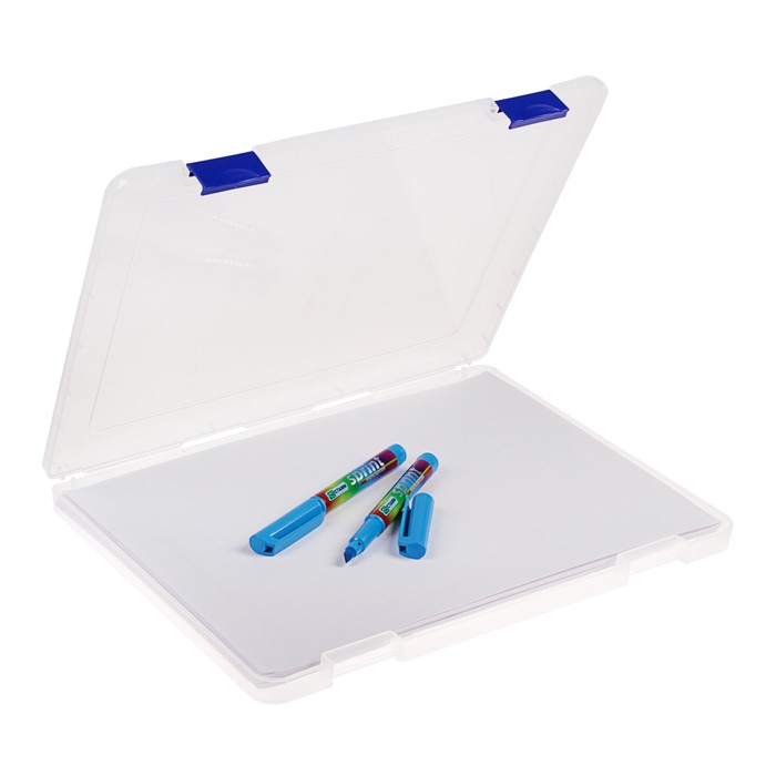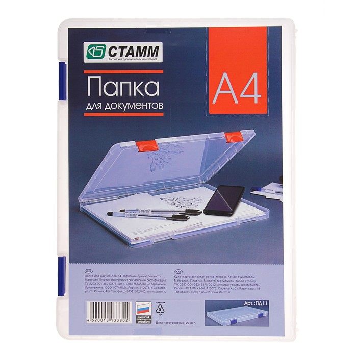 Папка для документов А4 Стамм, 230×305×23 мм, пластик, прозрачный корпус, синие защелки — Характеристики