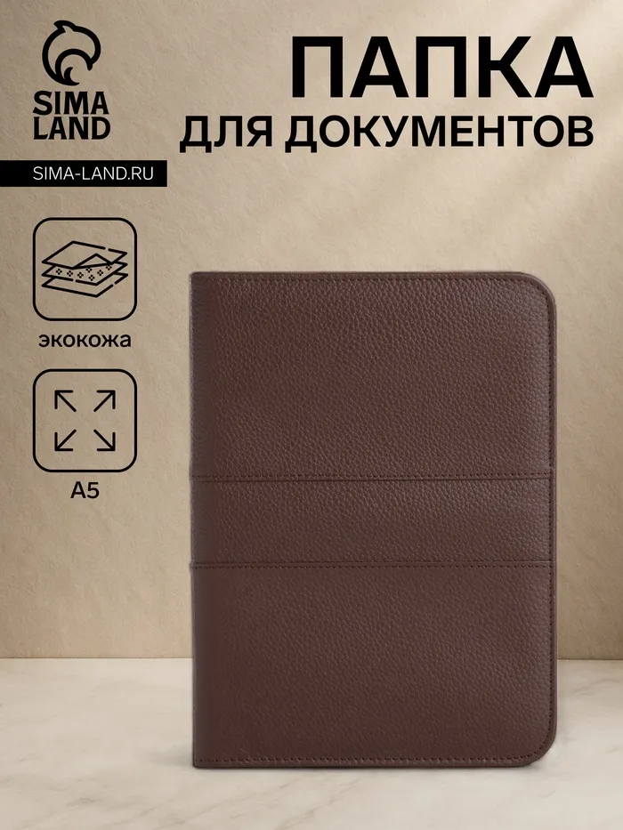 Папка для документов, формат А5, 19×2×24.5 см, коричневая — Характеристики