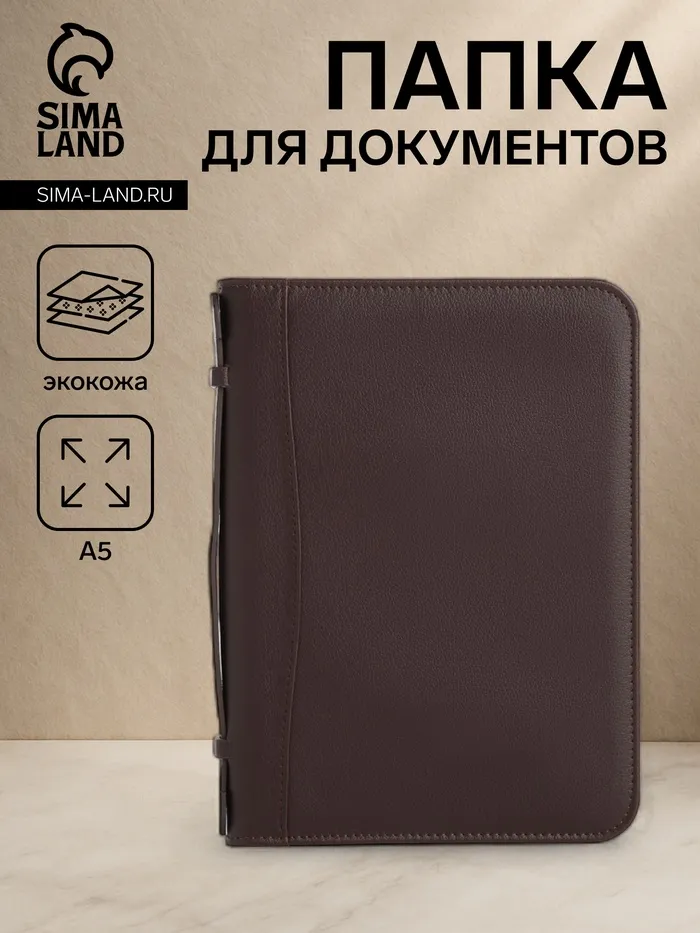 Папка для документов, с ручкой, формат А5, 18×1.5×25 см, тёмно-коричневая — Характеристики