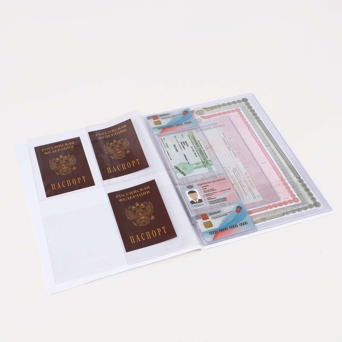 1я страница: 4 отдела для паспорта размером 10 × 13 см.