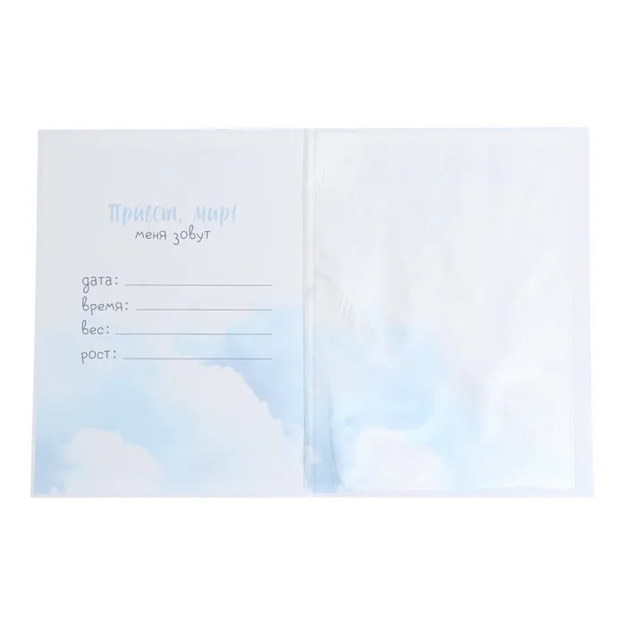 Папка под свидетельство о рождении формата А4 имеет удобный файл внутри, который защитит первый в жизни документ малыша от повреждений.