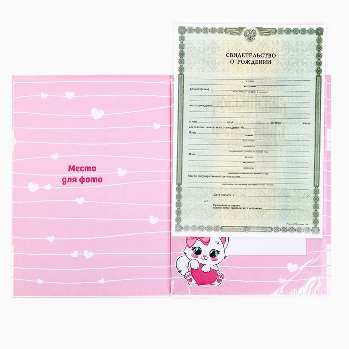 Папка под свидетельство о рождении формата А4 имеет удобный файл внутри, который защитит первый в жизни документ малыша от повреждений.