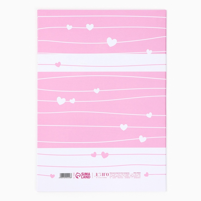 Папка для свидетельства о рождении «Наша малышка», розовая для девочки, 23.1×30.7 см — Характеристики