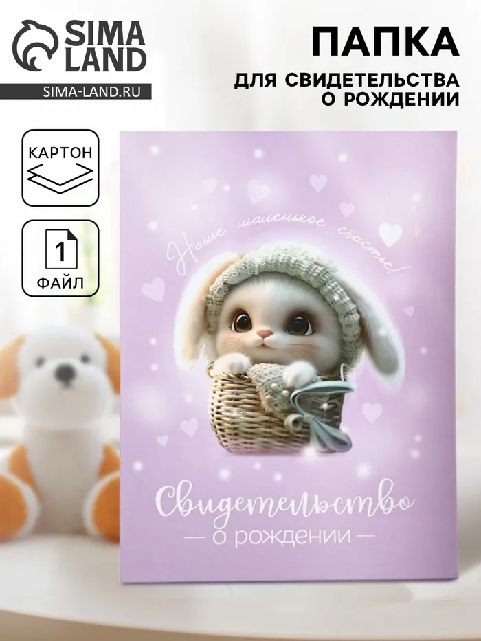 Папка под свидетельство о рождении формата А4 имеет удобный файл внутри, который защитит первый в жизни документ малыша от повреждений.