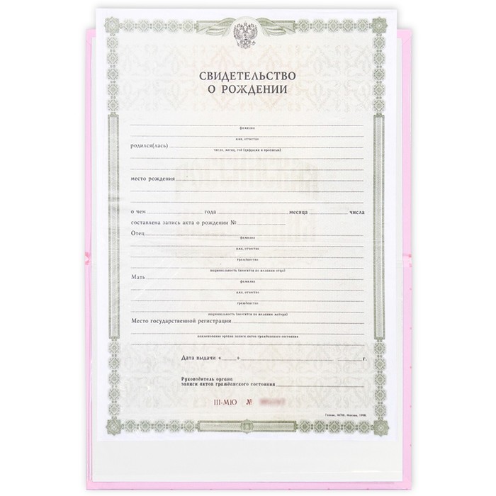 Папка под свидетельство о рождении имеет удобный файл внутри, который защитит первый в жизни документ малыша от повреждений.