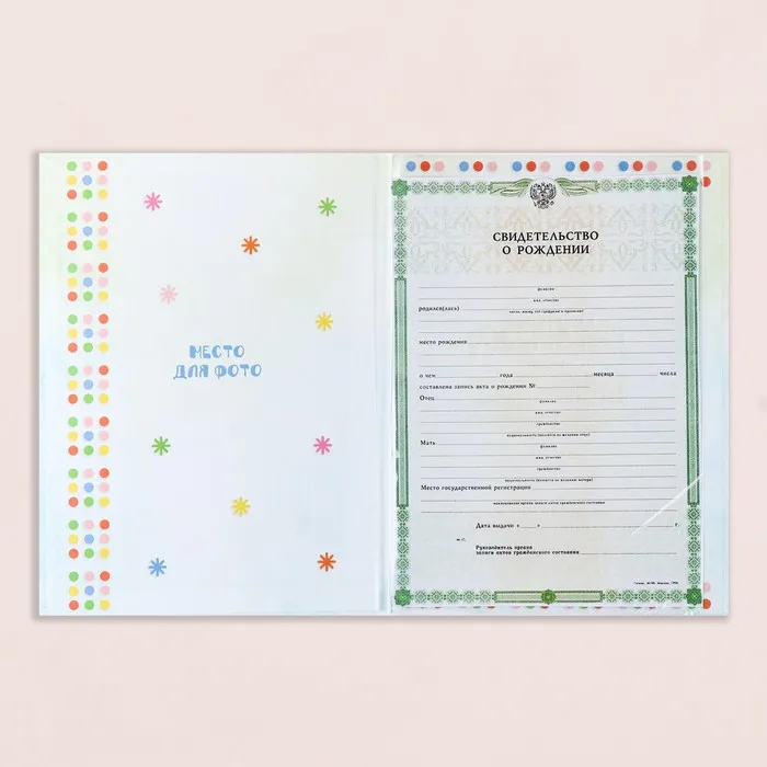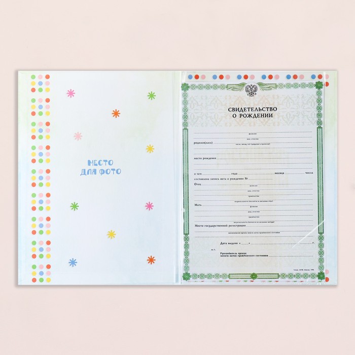 Папка для свидетельства о рождении, А4 «Мои первые документы»