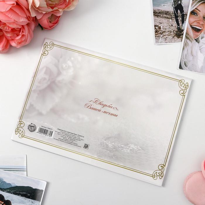 Обложка для свидетельства о заключении брака формата А5 станет лучшим обрамлением для вашего первого совместного документа. Красивая свадебная папка подчеркнёт всю торжественность бракосочетания, она будет напоминать вам о светлом дне свадьбы. В такой папке ваш семейный документ не помнётся, не испачкается и будет сохранять свою красоту всю жизнь. Оригинальный дизайн папки создаст отличное настроение новобрачным и станет хорошим презентом на свадьбу или её годовщину. Папка выполнена из плотного переплётного картона 1,25 мм. Папка с файлом А4.
