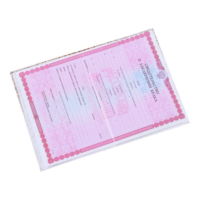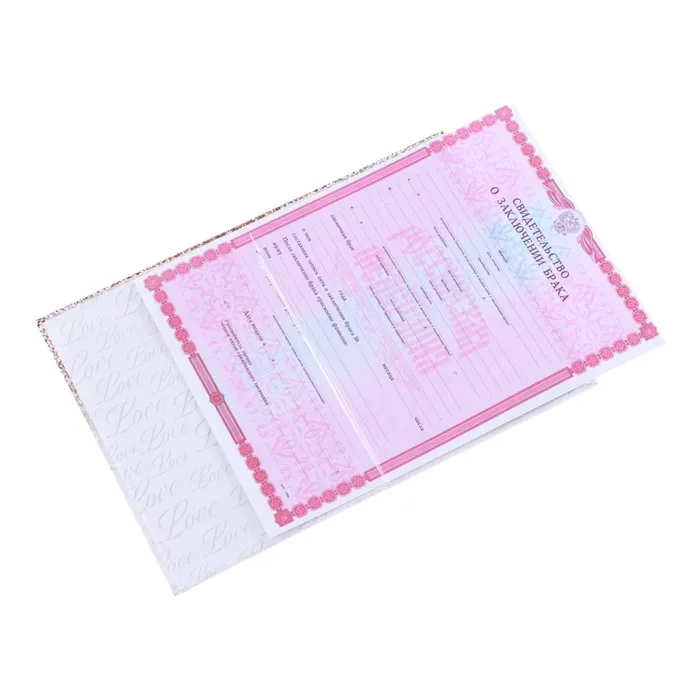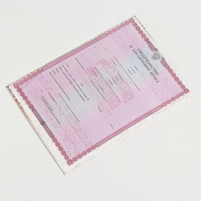 Обложка для свидетельства о заключении брака формата А5 станет лучшим обрамлением для вашего первого совместного документа. Красивая свадебная папка подчеркнёт всю торжественность бракосочетания, она будет напоминать вам о светлом дне свадьбы. В такой папке ваш семейный документ не помнётся, не испачкается и будет сохранять свою красоту всю жизнь. Оригинальный дизайн папки создаст отличное настроение новобрачным и станет хорошим презентом на свадьбу или её годовщину. Папка выполнена из плотного переплётного картона 1,25 мм. Папка с файлом А4.