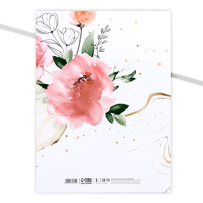 Папка для свидетельства о заключении брака «Нежность», А4. станет лучшим обрамлением для вашего первого совместного документа. Красивая свадебная папка подчеркнёт всю торжественность бракосочетания, она будет напоминать вам о светлом дне свадьбы. В такой папке ваш семейный документ не помнётся, не испачкается и будет сохранять свою красоту всю жизнь. Оригинальный дизайн папки создаст отличное настроение новобрачным и станет хорошим презентом на свадьбу или её годовщину.
