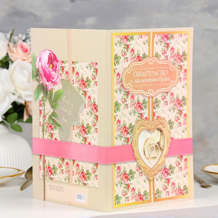 Свидетельство о заключении брака «Всё начинается с любви» тиснение, 23.5 × 31.3 см.