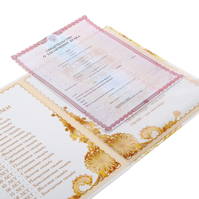 Обложка для свидетельства о заключении брака формата А4 станет лучшим обрамлением для вашего первого совместного документа. Красивая свадебная папка подчеркнёт всю торжественность бракосочетания, она будет напоминать вам о светлом дне свадьбы. В такой папке ваш семейный документ не помнётся, не испачкается и будет сохранять свою красоту всю жизнь. Оригинальный дизайн папки создаст отличное настроение новобрачным и станет хорошим презентом на свадьбу или её годовщину. Папка изготовлена ихз переплётного картона 1,25 мм. Формат обложки А4. Папка с файлом А4.