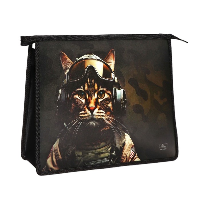 Папка для тетрадей А4, 325×230×55 мм, молния сверху, пластиковая, «Кот камуфляж» — Характеристики
