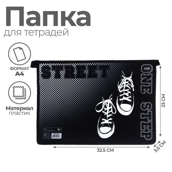 Папка для тетрадей А4 «Кеды», 325×230×55 мм, молния сверху, пластиковая, Calligrata — Характеристики