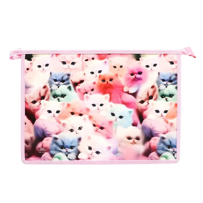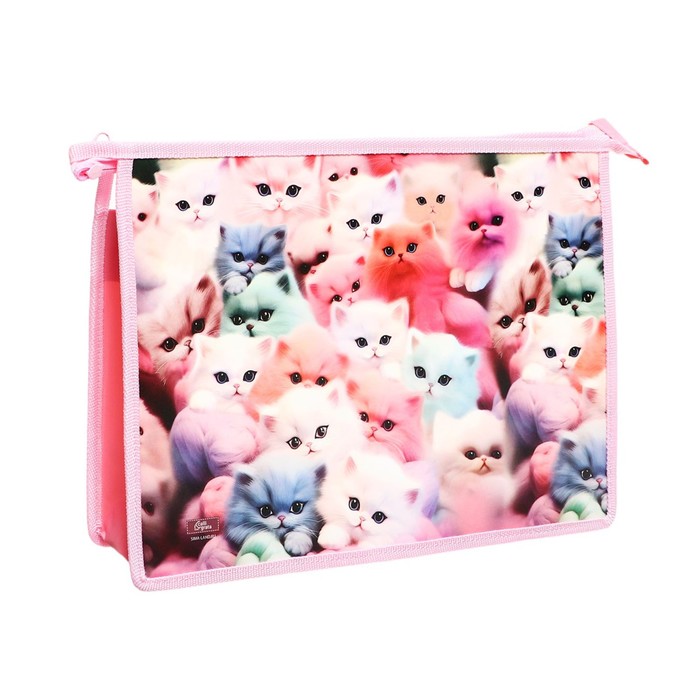 Папка для тетрадей А4 «Котики пушистики», 325×230×55 мм, молния сверху, пластиковая, Calligrata