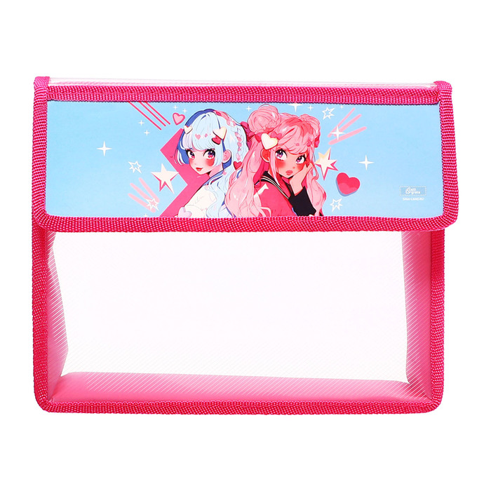 Папка для тетрадей А5 230×190×50 мм, с клапаном на липучке, пластик/текстиль, «Аниме подружки» — Характеристики