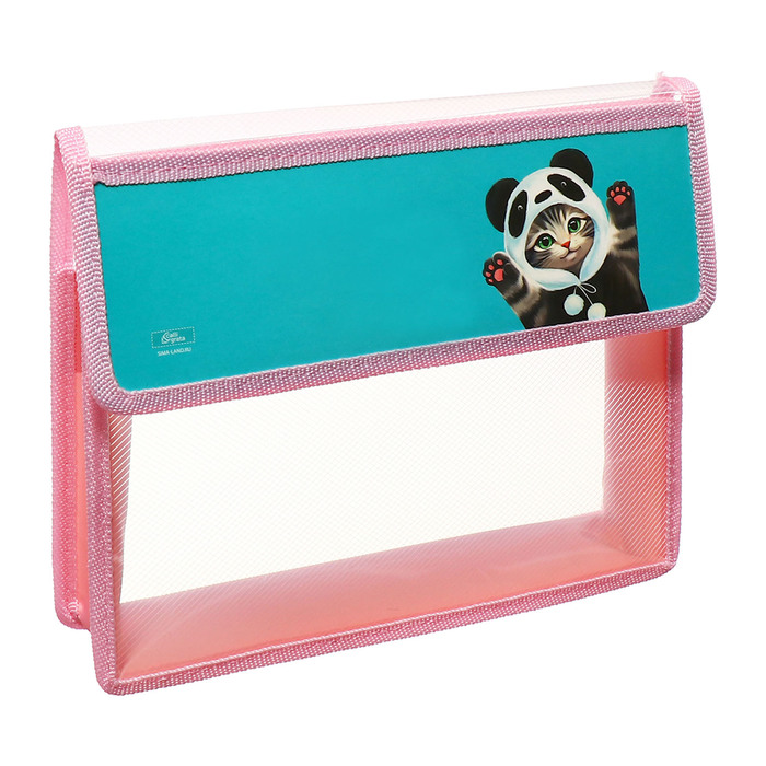 Папка для тетрадей А5 230×190×50 мм, с клапаном на липучке, пластик/текстиль, «Котик панда» — Характеристики