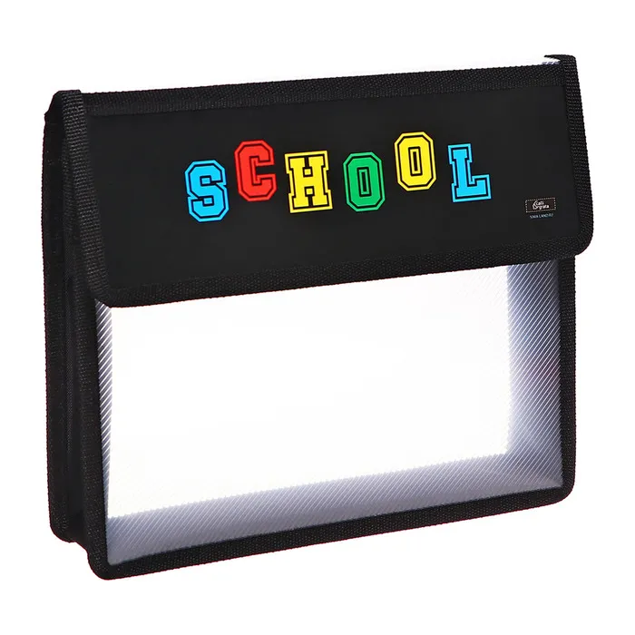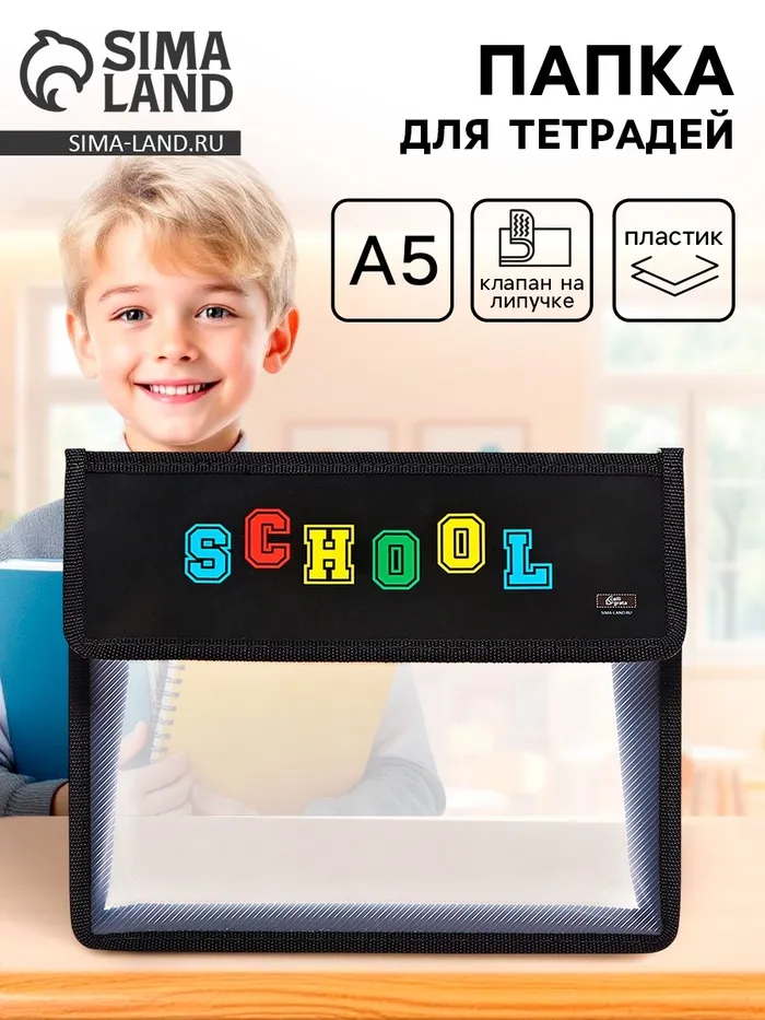 Папка для тетрадей А5 230×190×50 мм, с клапаном на липучке, пластик/текстиль, School — Характеристики