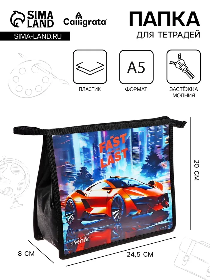 Папка для тетрадей А5, 243x200x80 мм, deVENTE "Fast Or Last", молния сверху, пластиковая, для мальчика — Характеристики